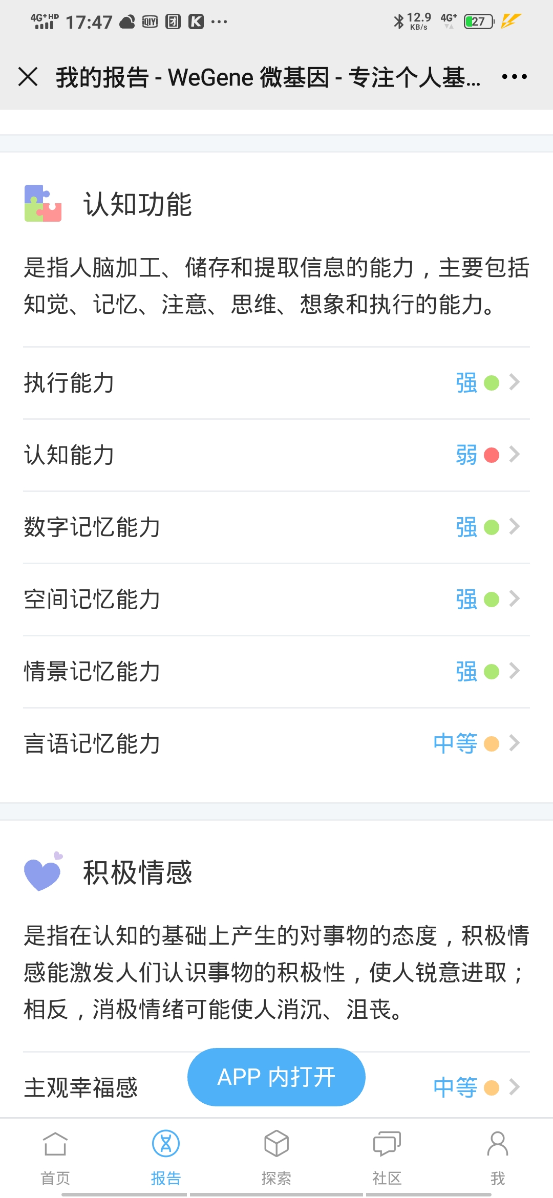 认知和空间这两项给的与个人实际结果相反