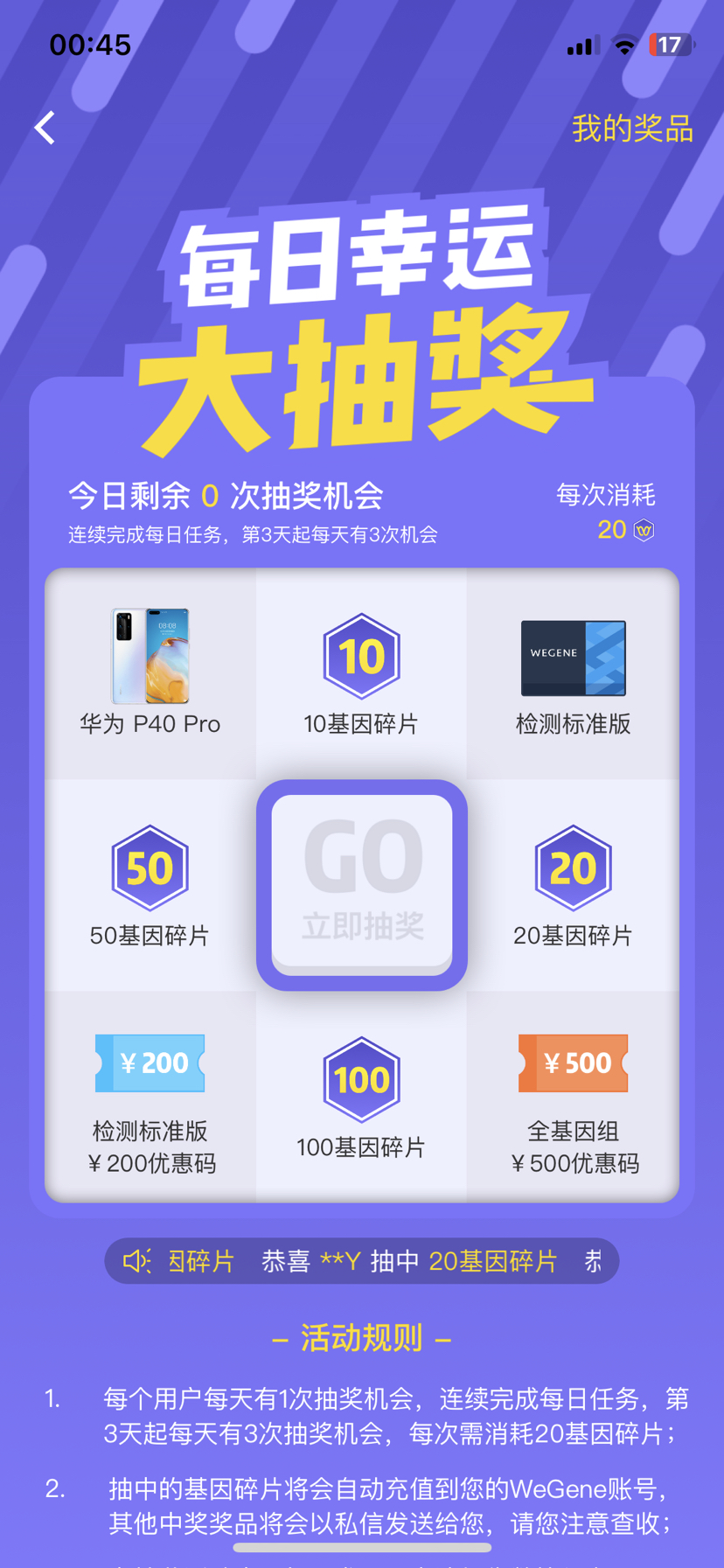 每日幸运大抽奖中奖了