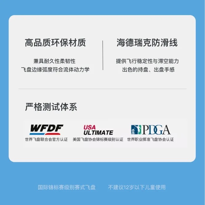 这一系列飞盘,采用高品质环保材质,兼具耐久性、柔韧性,边缘弧度符合流体动力学。