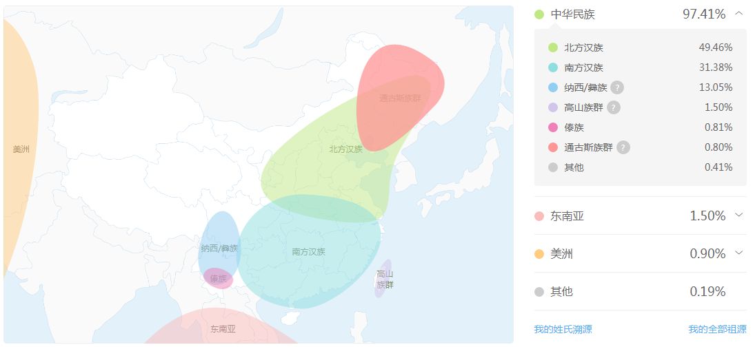 我的这个报告里没有父系。完整祖源里有显示有德系犹太人,不过和测出来的东南亚、美洲土著一样,不是说比例太低,可以忽略嘛。