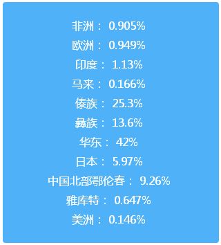 汉R下HV0.4%,H1很少很少很少,欧R下HV2.4%,H1占17%,不能以集中度来定西来或东来,也不能以韩日来定自东向中国扩散,实际是中国向日韩扩散与本地混血