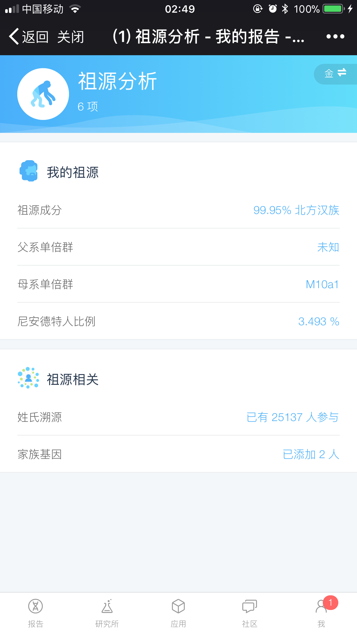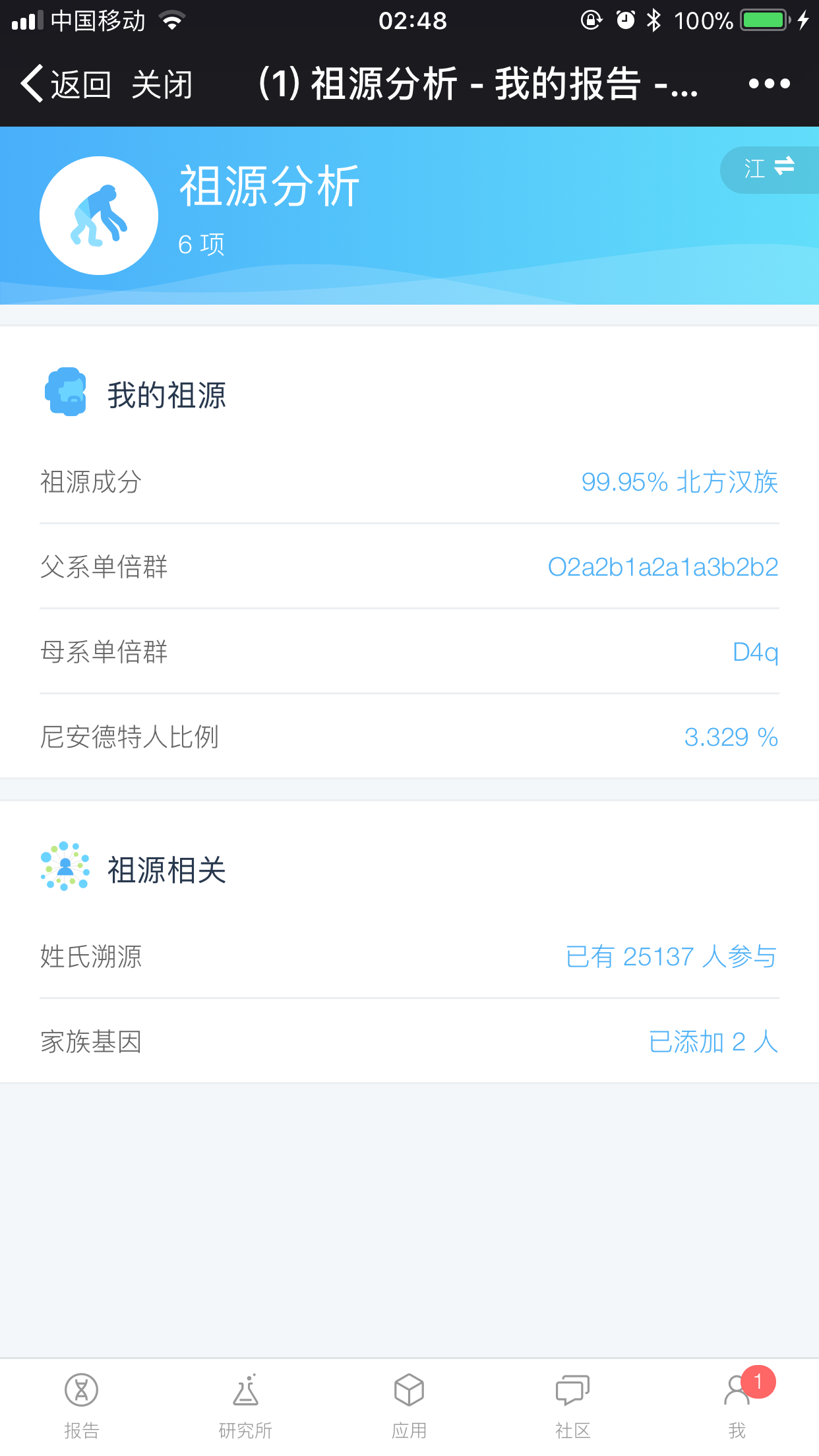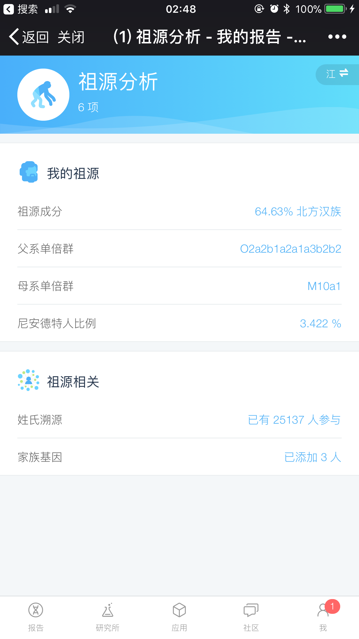 今天接收到父母报告通知,父母亲和我的结果都是2级以内基因关系,父系和母系单倍群也一致