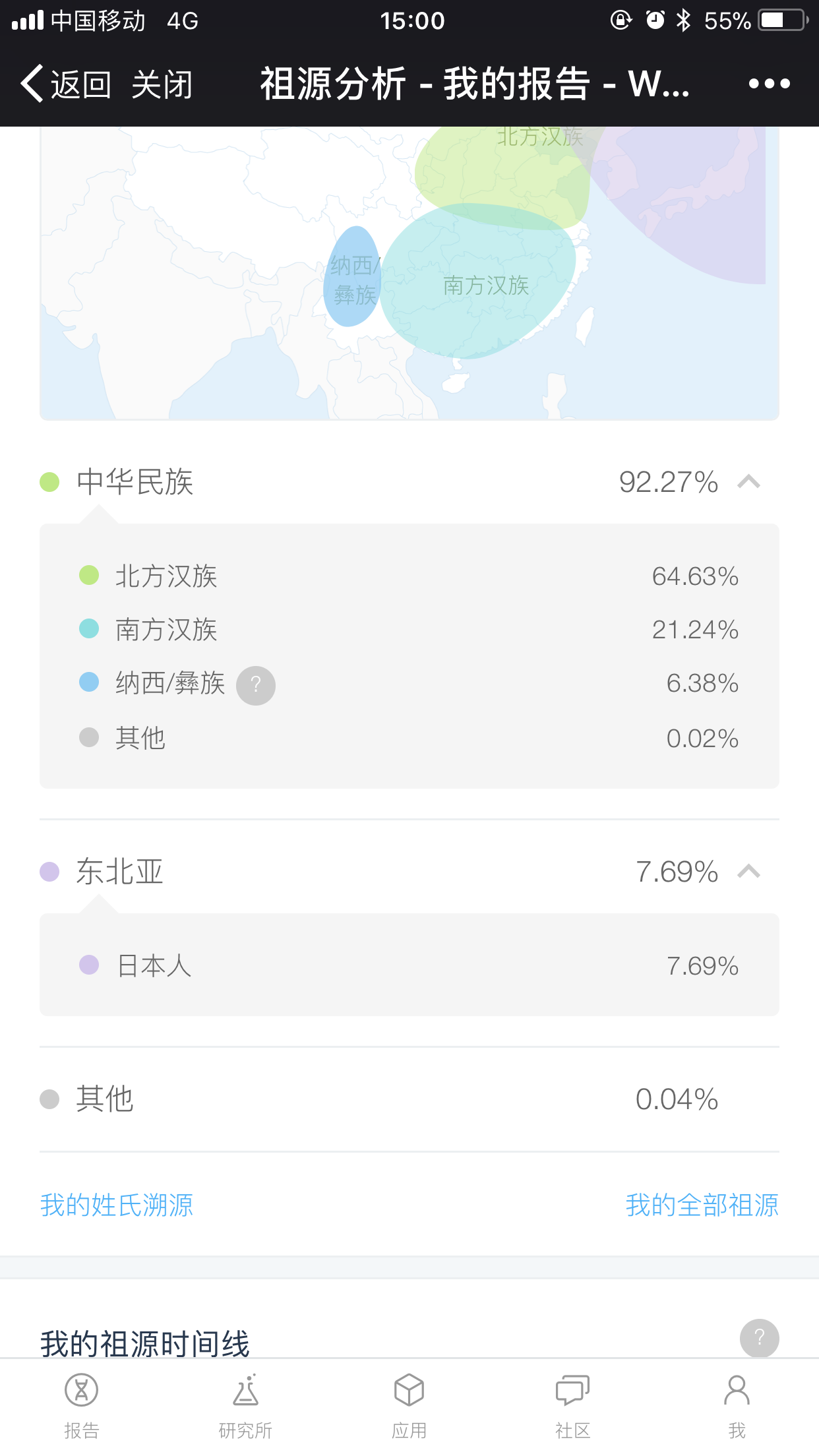 但是祖源信息上,为何我多出了这么多祖源。。。。。而且父母亲百分比一致,是不是系统有问题