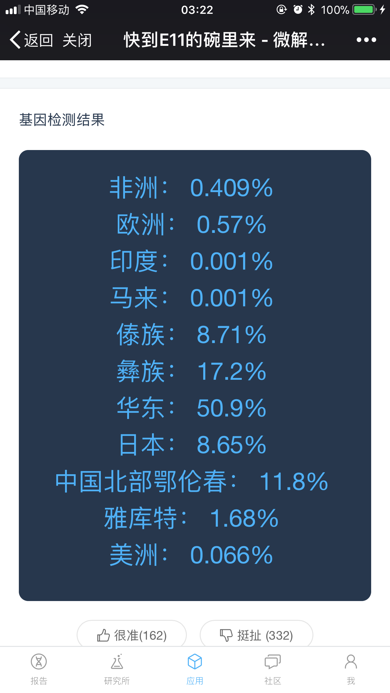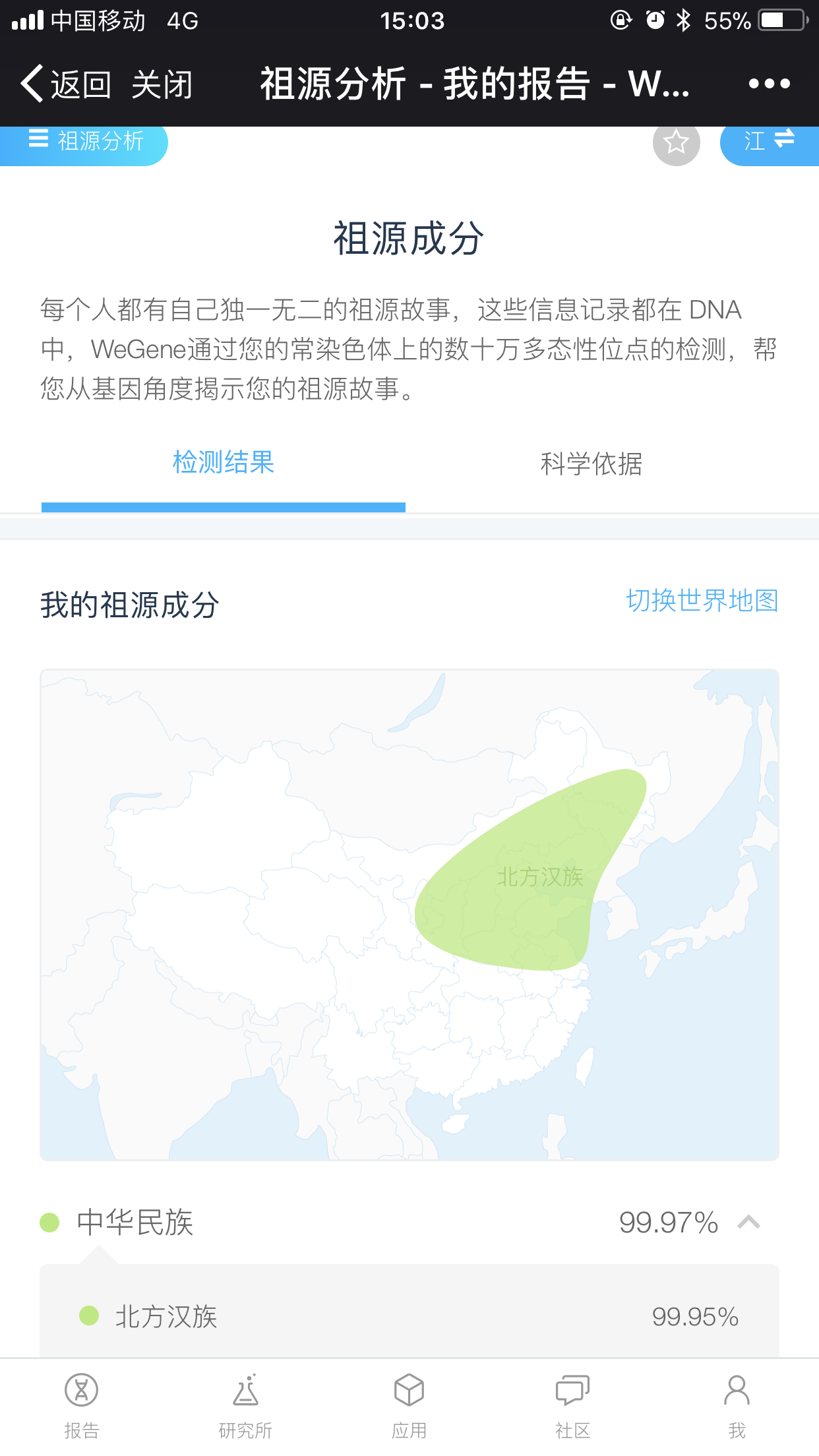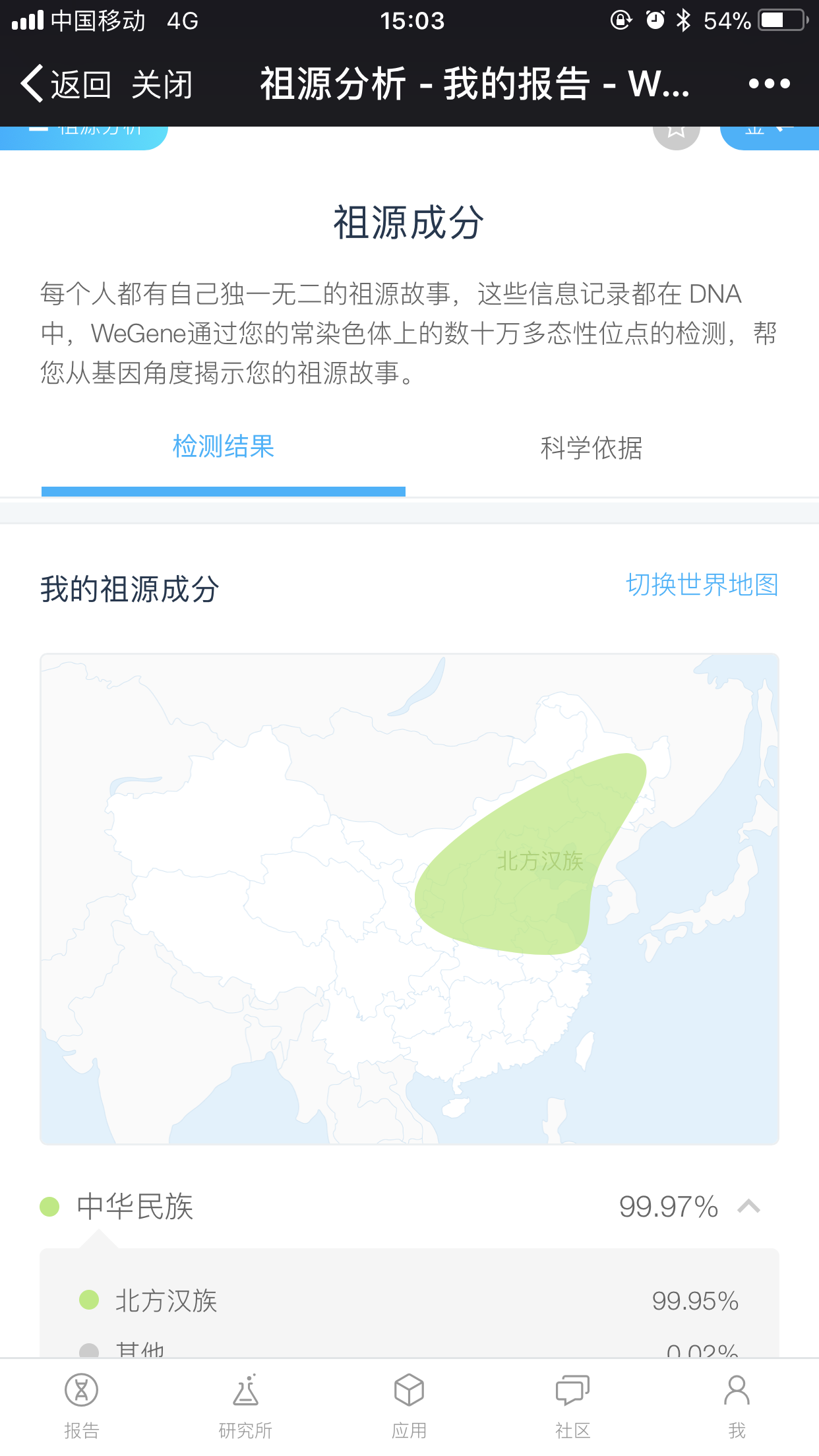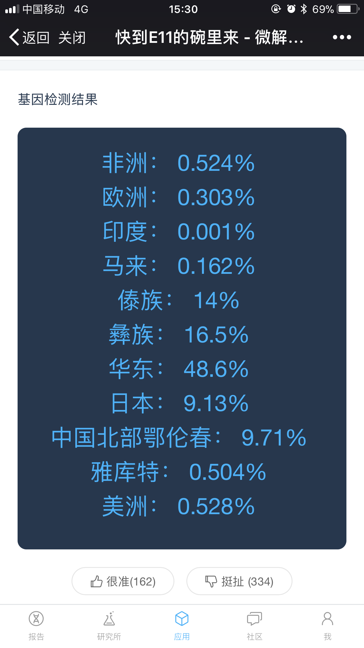 系统算法有很大问题,所以特别容易在同时测了父母一代和自己一代这样情况下露馅儿,所以看看就好~